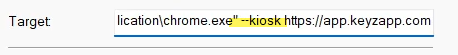 Check that target is correct in the shortcut. After the quotation marks, there should be a space and then --kiosk