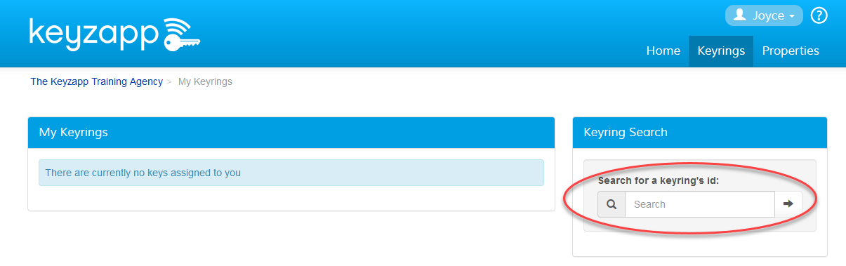 When you click on the Keyrings tab, you will be taken to the Keyrings page.